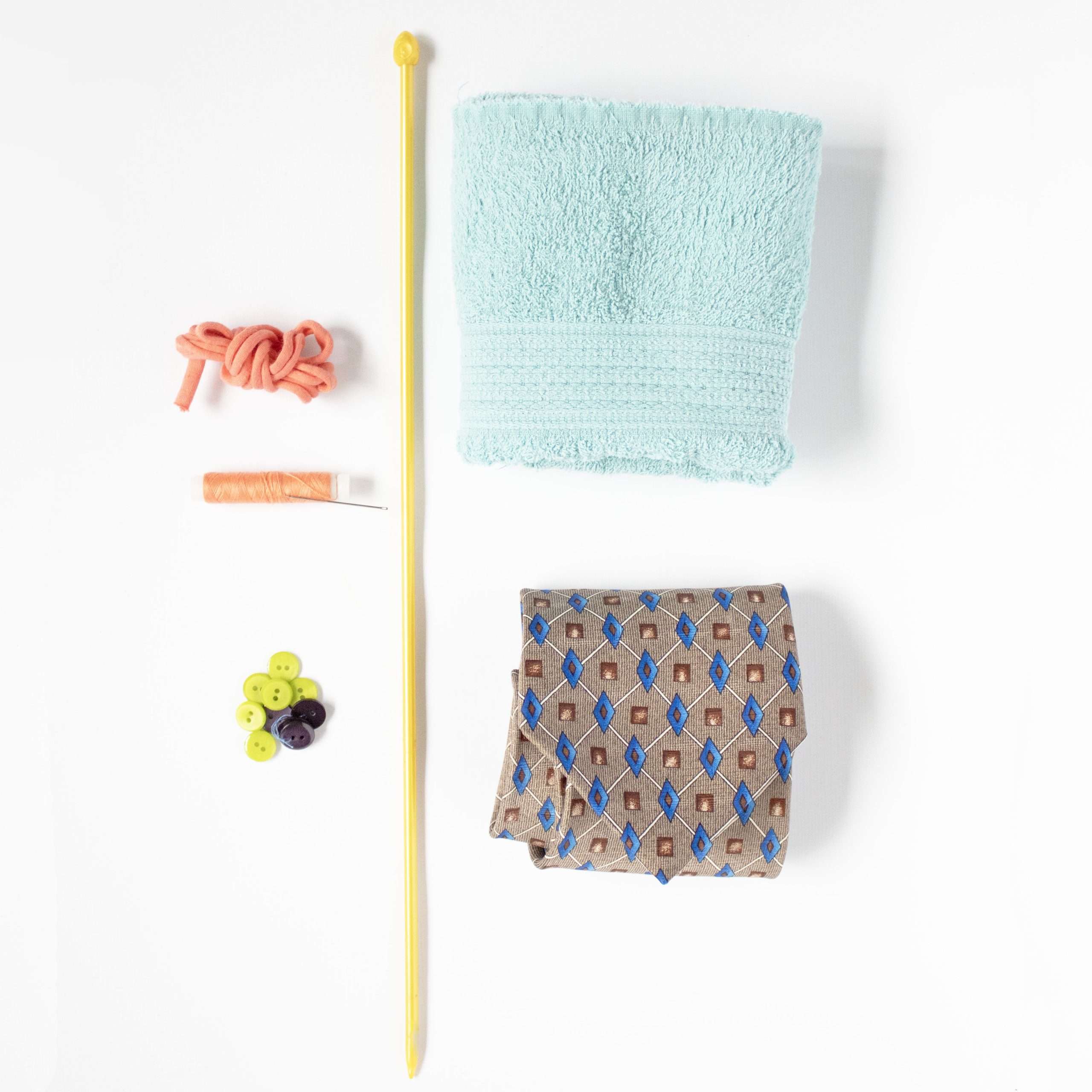 2. Naai-kit: Ons pakket bevat een naald, klosje garen en een restdraad in vrolijke kleur.