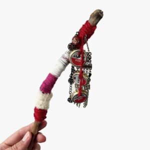Versier een takje met wollen draden, oude sieraden en bierdopjes tot een RaTaTakje. Schud ermee om muziek te maken.