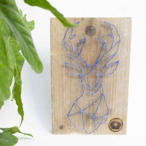 Maak een leuke print op resthout met spijkers en een hamer. Eerst even lekker spijkers slaan, daarna rustgevend draden draaien tot een mooie print.